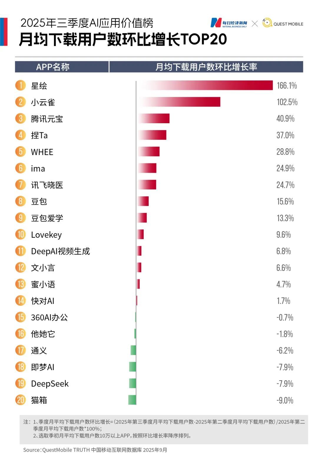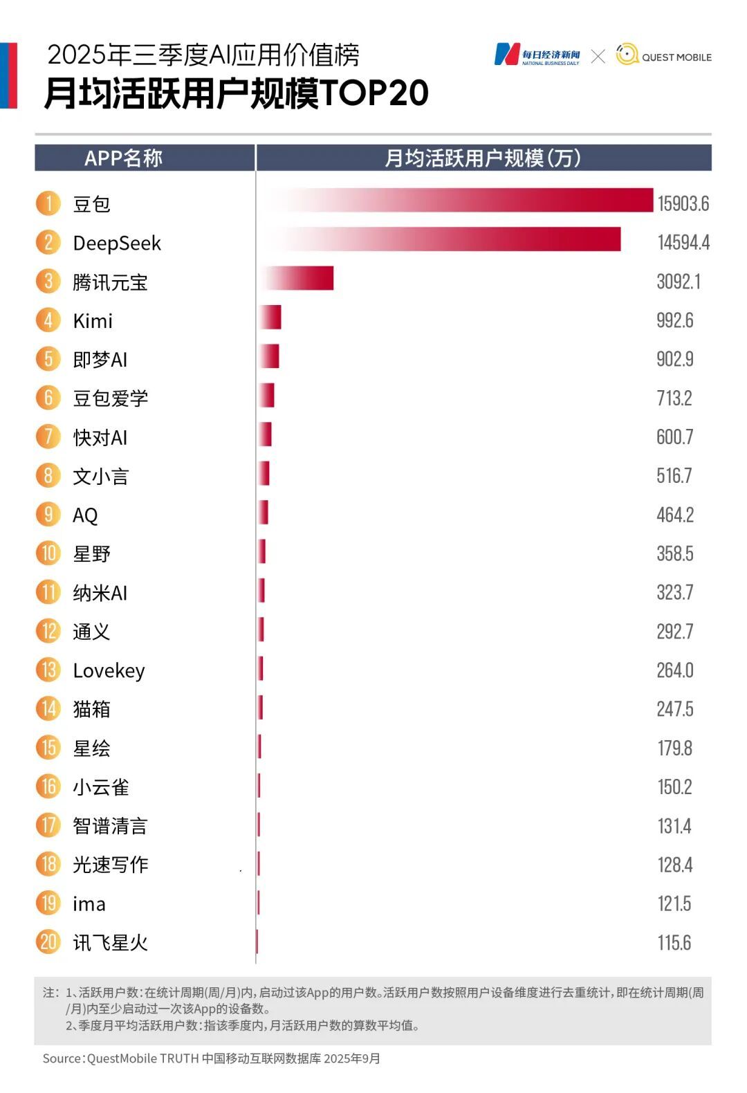 《2025年三季度AI应用价值榜》表明,AI应用市场已彻底告别“广撒网”的流量竞争,进入了“生态绞杀”与“场景深耕”的全新阶段。