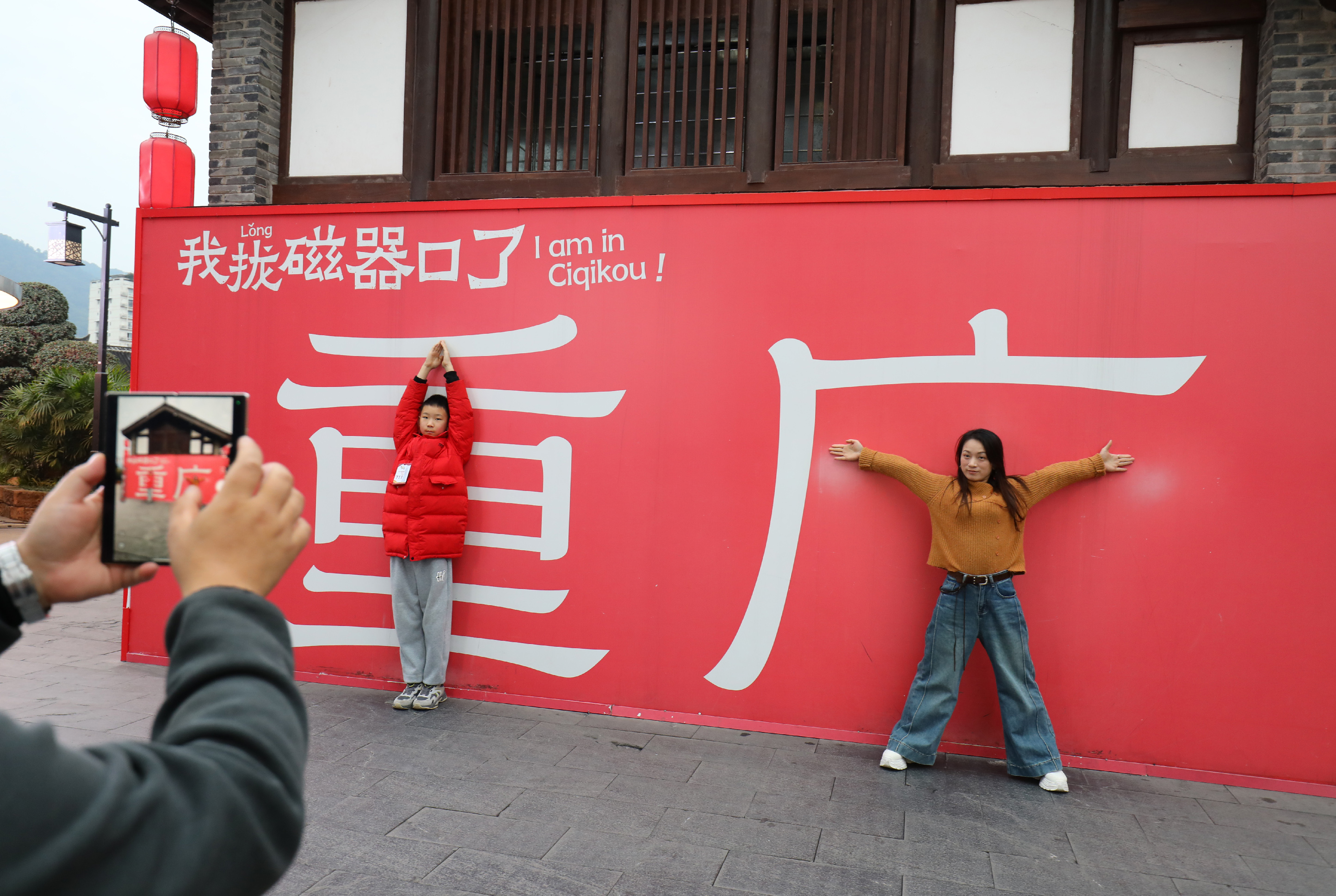 ▲12月23日,沙坪坝区磁器口古镇景区,游客正在拍照。特约摄影 孙凯芳