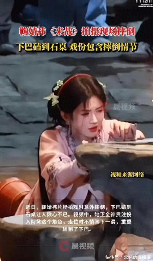 宝子们!2025年7月10号鞠婧祎拍戏意外的视频,我反复看了三遍都觉得揪心!当时她在拍古装剧《来战》的楼梯戏份,穿著层层叠叠的汉服裙摆,不知道是楼梯刚拖过湿滑,还是裙摆勾到台阶,整个人突然失去平衡,从大概三阶高的楼梯上直挺挺滚下来,下巴重重磕在旁边的石桌边缘,手忙脚乱撑着地起来时,能明显看到下巴红了一大片,剧组工作人员冲过去扶她的时候,她还下意识摸了摸下巴,强装镇定说“没事没事”。 后来粉丝扒出片场路透,才知道当时情况比视频里还严重——鞠婧祎的汉服袖口沾了点血迹,化妆师临时补妆时,用遮瑕盖了好一会儿下巴的淤青。但即便这样,她歇了不到20分钟就重新站回拍摄位,连导演说“先拍其他戏份”都拒绝,坚持把当天的楼梯镜头拍完,结束后才去医院做检查。剧组后来也回应了,说当天立刻安排了急救处理,之后给鞠婧祎放了3天假休息,还全面检查了片场所有楼梯、台阶的防滑措施。